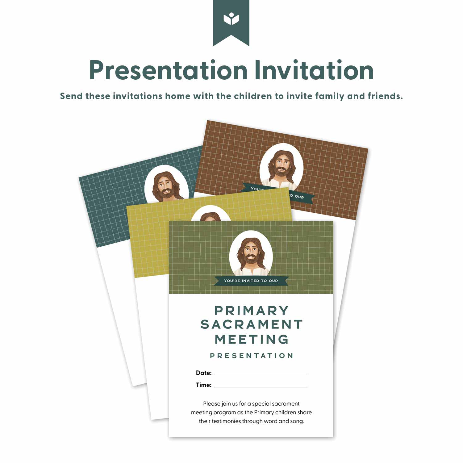 Families can be informed and excited about the upcoming Primary Sacrament Meeting Presentation with this kit that includes invitations, save the date cards, and a program cover. You can also encourage your Primary children to use the invitations to share the gospel and invite friends and neighbors.