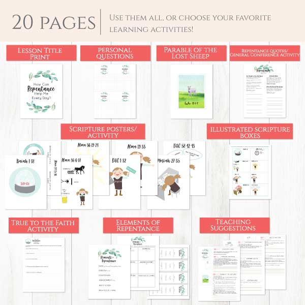 This Come, Follow Me teaching package comes with seven learning activities which helps you teach your LDS young women, young men, and family to answer the question, “How Can Repentance Help Me Every Day?“. You will be able to choose the best activities to fit the need of your group, and then use as suggested or adapt as you see fit.