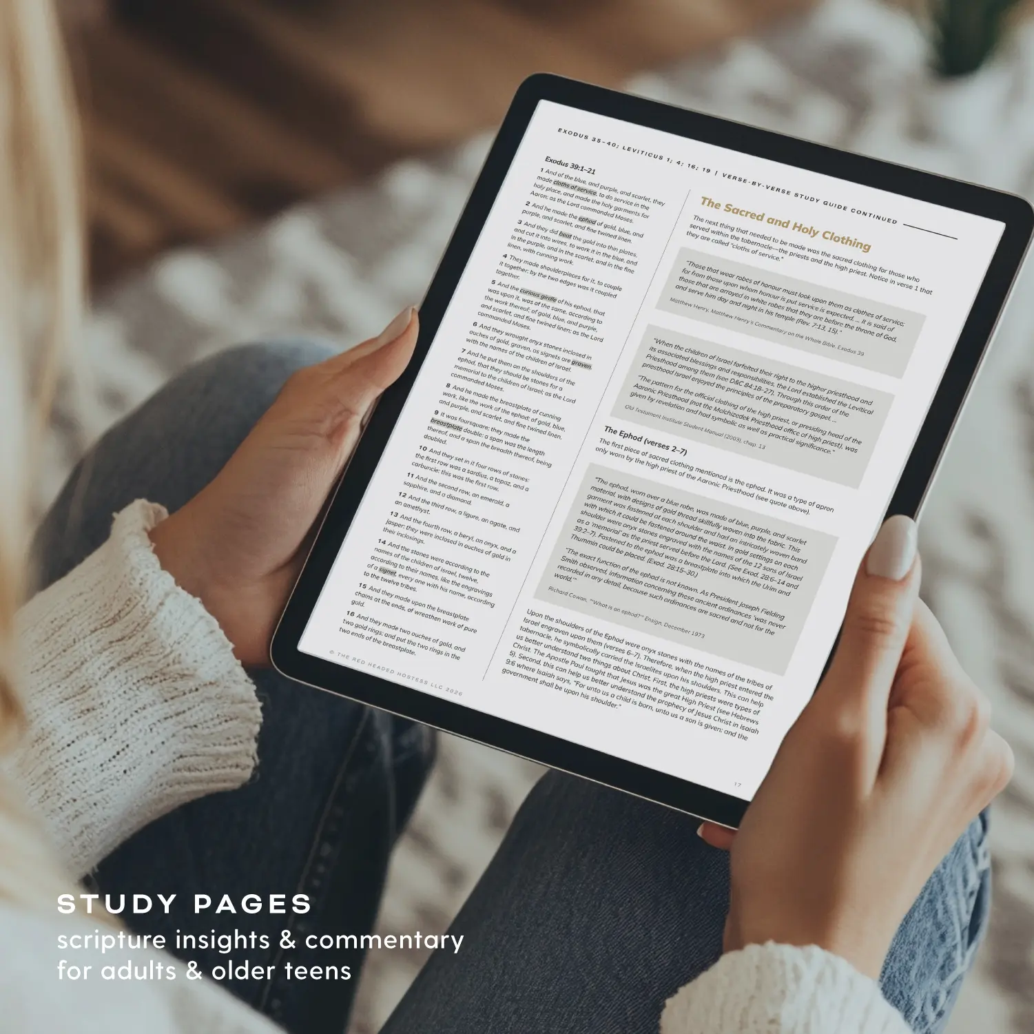 - Verse-by-Verse Study Guide: Contains actual scripture text from the scriptures, additional insights, commentary (insights, background, quotes, etc.) about the verses, and questions to help you think and connect the scriptures to your life
