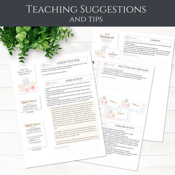 This “Come Follow Me” lesson kit comes with seven amazing learning activities which helps you teach your young women, or family to answer the question, “Why are Temple Ordinances Important?“. You will be able to choose the best activities to fit the needs of your group, and then use as suggested or adapt as you see fit.